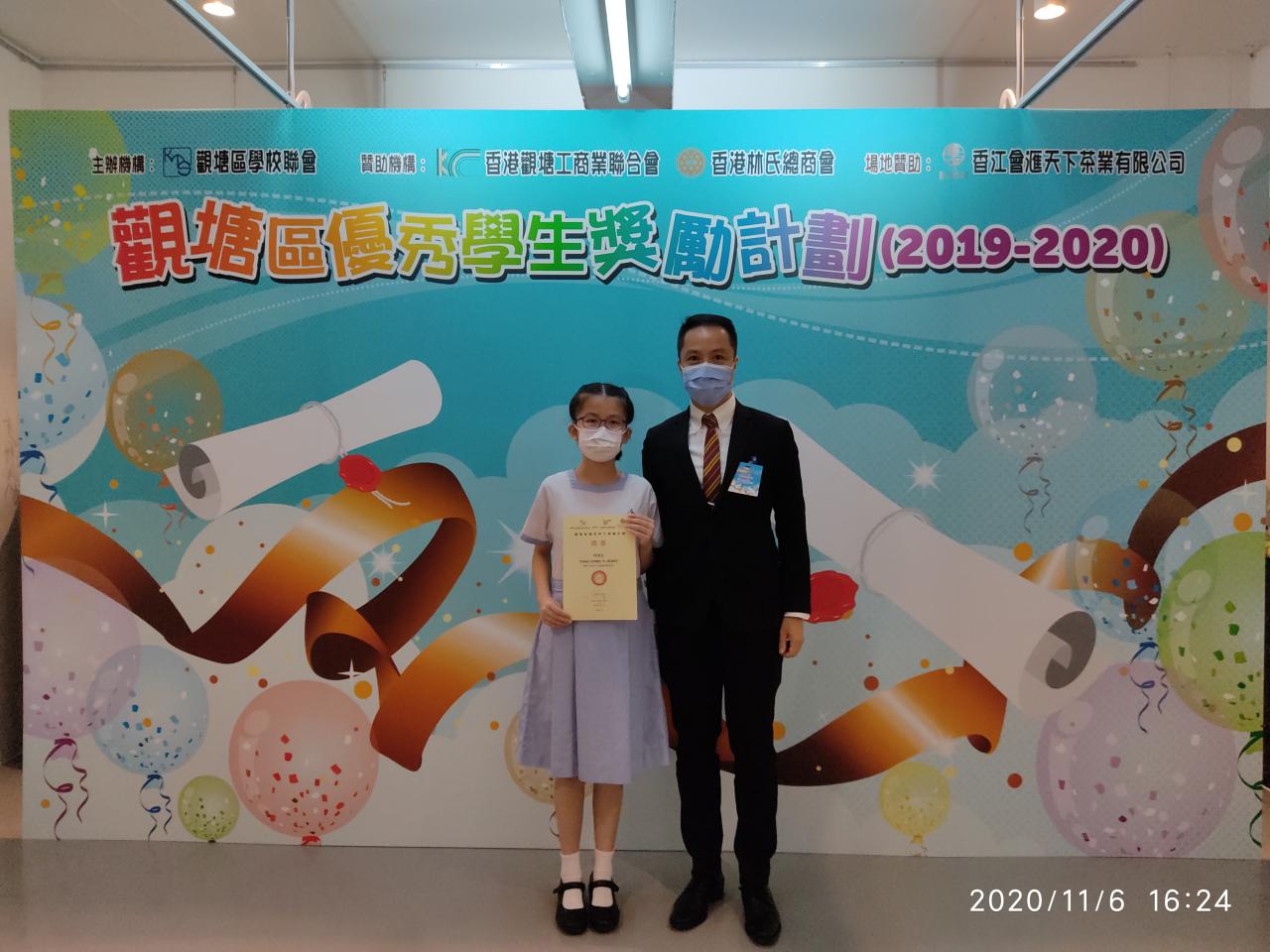 恭賀6C周清宜同學榮獲 2019-2020 觀塘區優秀學生獎,特此嘉許。